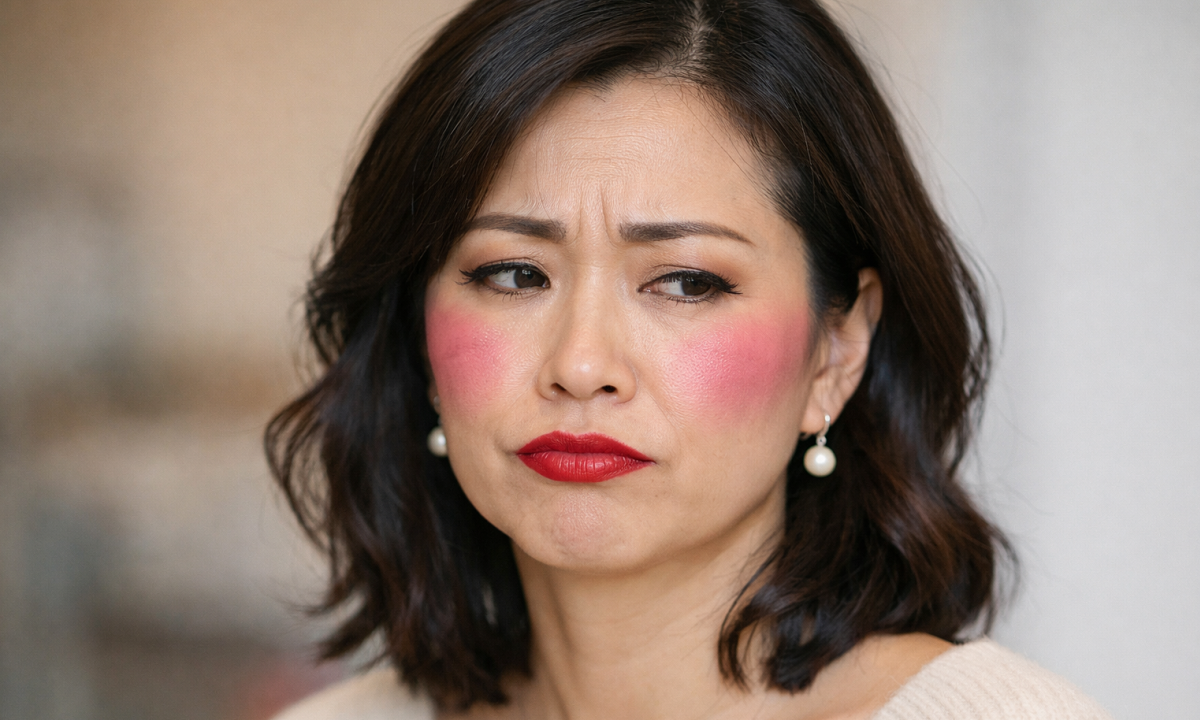 Thoa má hồng sai vị trí hoặc chọn tone màu kém hài hòa với son môi có thể khiến vẻ ngoài trông kém tự nhiên, thậm chí khiến gương mặt 'dừ' hơn tuổi.