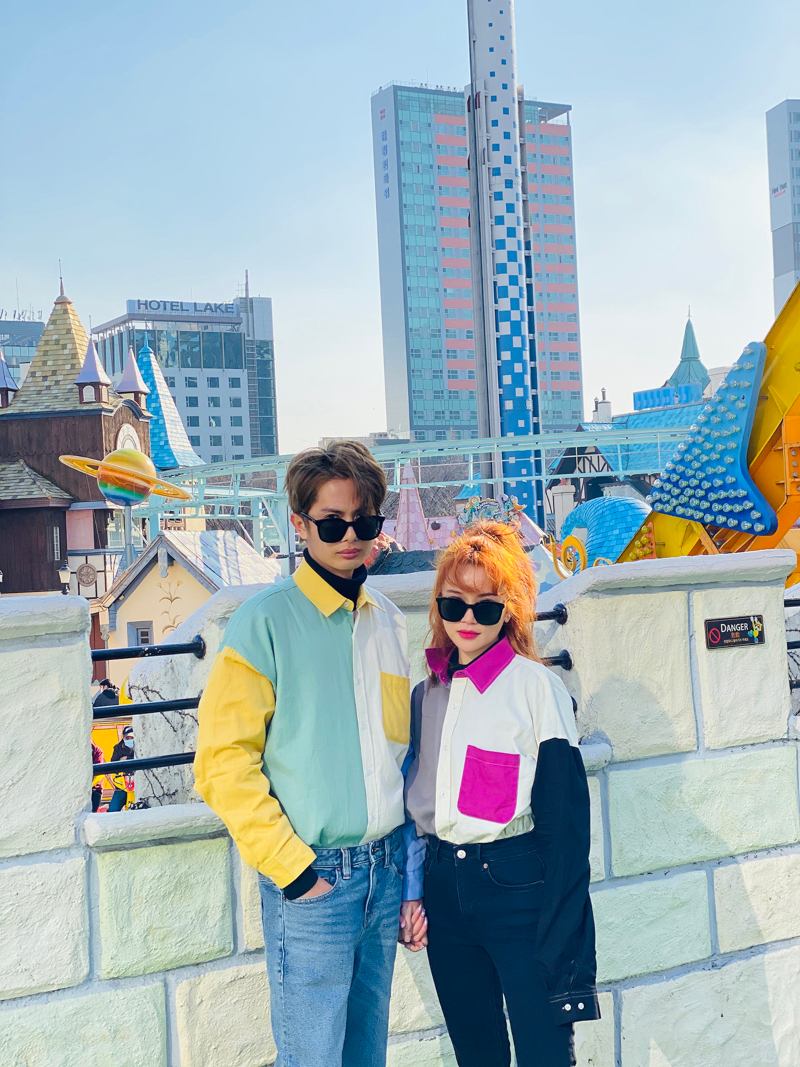 Trong một set đồ này, Sĩ Thanh và Huỳnh Phương đã chọn những loại trang phục có màu ngẫu nhiên trong số các màu: hồng, đen, xanh, nâu… để phối cùng nhau.